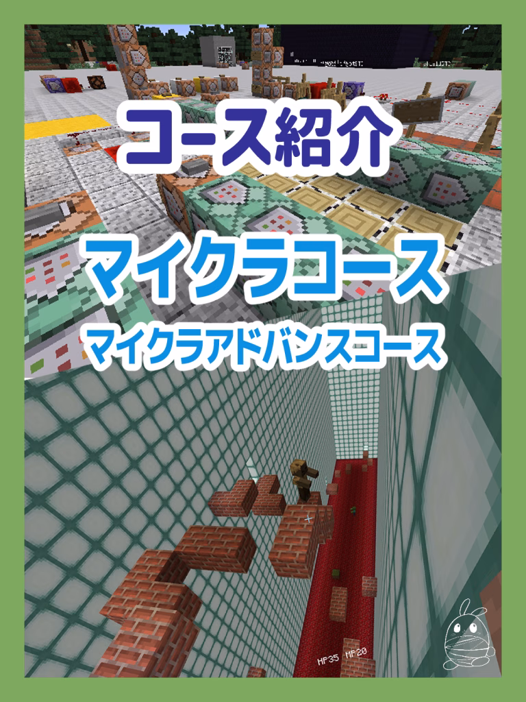 子どもたちに人気のMinecraftのJava版を使用しワールド内に自身のオリジナルゲームを作りながらプログラミングに必要となる入力や構文の感覚を育てることができるコースです。
